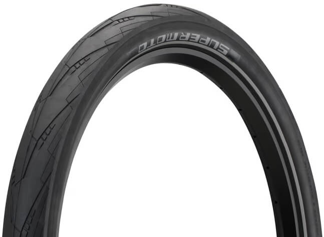A Schwalbe Super Moto (11159148) egy prémium, motorsport-ihletésű külső gumi, kifejezetten városi e-bike használatra. A 28x2.40 (62-622) méretű abroncs ADDIX keverékkel, Double Defense és RaceGuard technológiával készül a maximális defektvédelemért. Alacsony gördülési ellenállást, kiváló tapadást és E-50 minősítést kínál 50 km/h sebességig, reflexcsíkkal kiegészítve.