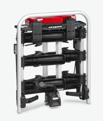 - Az univerzális, csipeszszerűen működtethető kerékpár rögzítő karok segítségével egyszerűen és rugalmasan beállítható a rögzítés helye.